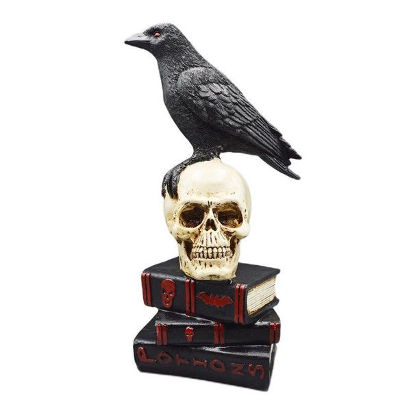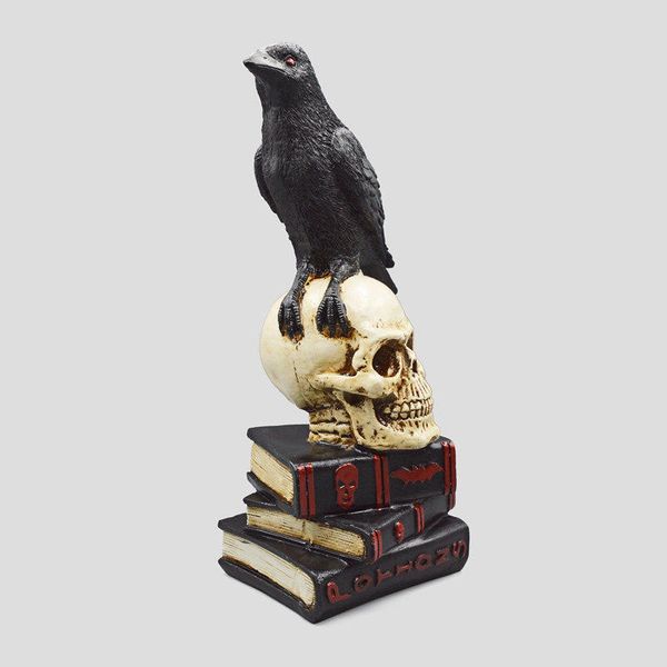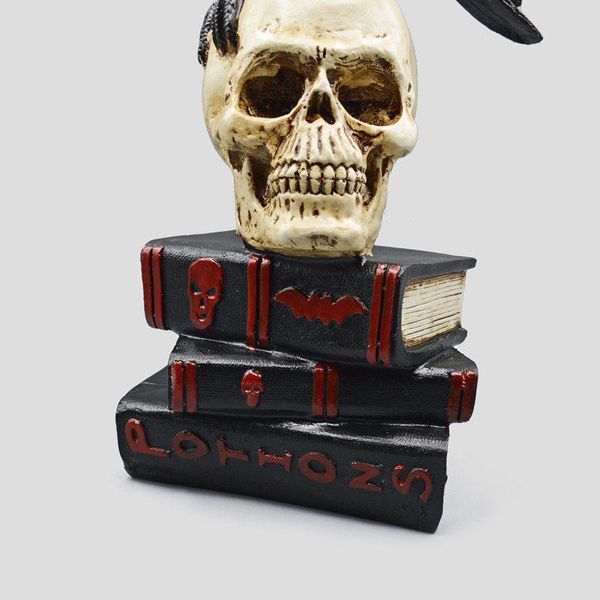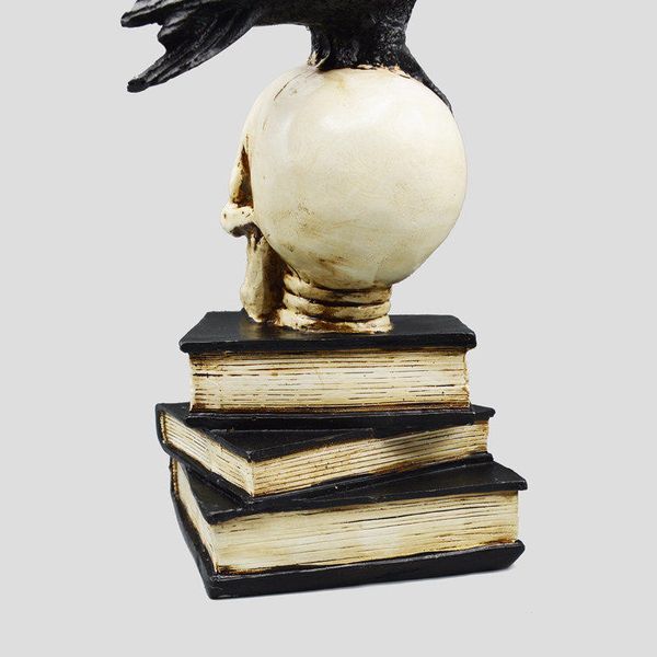 مجسمه مدل کلاغ و جمجمه و کتاب